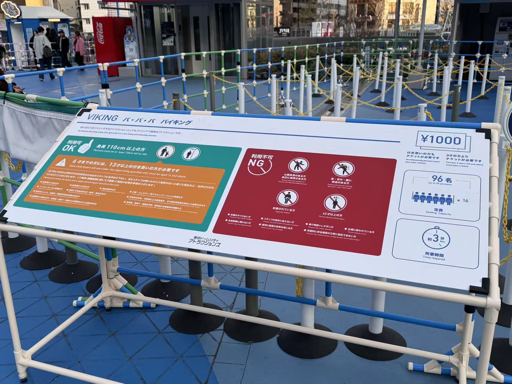 また、遊園地エリアにおいても、アトラクションごとに利用条件が明確に表示されており、年齢制限、身長制限、利用不可条件などが、アイコンと文章で分かりやすく示されていた。